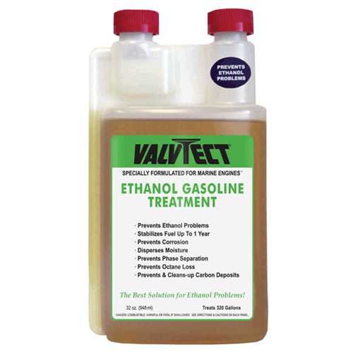 Verified by engine manufacturer and ASTM tests, the new ValvTect Ethanol Gasoline Treatment is proven to stabilize gasoline, prevent corrosion, control moisture to help prevent phase separation, reduce octane loss and clean-up carbon deposits. Ethanol gasoline destabilizes quickly and can prevent starting, cause stalling and plug fuel filters. Valvtect Ethanol Gasoline Treatment is test proven to stabilize fuel for up to one year. As established under ASTM test procedures, it improved fuel stability 130% better than enzyme fuel treatments. In the ASTM Water Interface test, Valvtect's additive was 50% more effective than enzyme-based additives, therby better reducing the chance of phase separation. Additionally, ValvTect was substantially more effective at preventing rust and corrosion.