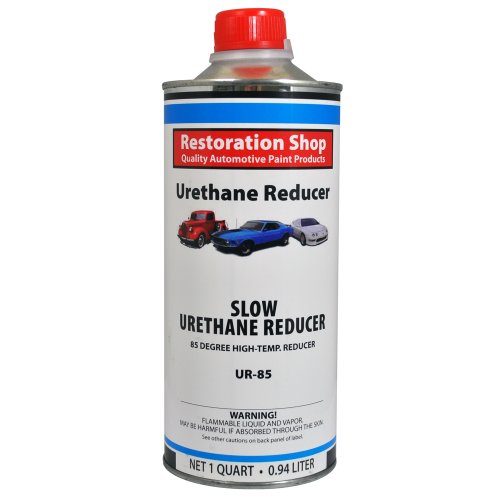 Restoration Shop Slow Urethane Reducer UR85 is a high temperature, above 85 degrees, paint thinner/reducer. This premium quality reducer is designed to be used with Restoration Shop's Acrylic Enamel, Acrylic Urethane, and Urethane Basecoat Auto Paints. This reducer may also be used to cut viscosity in any of Restoration Shop's urethane primers, epoxy primers and urethane clearcoats.