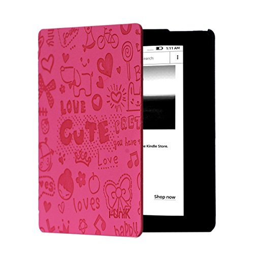 i-UniK Amazon Kindle 6" 8th Generation 2016 Case Support Sleep/Awake Hard Shell Protective Cover - (Cute Pink)